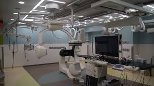 Its integral aluminum extrusions allow for LED Lighting to be placed throughout the system and directly over the patient to help increase light levels for the Cardiac Team to work efficiently and effectively. The aluminum extrusions also allow for the required Uni-Strut to be placed in the system per the specifications of General Electric imaging equipment used in the Cath Lab.